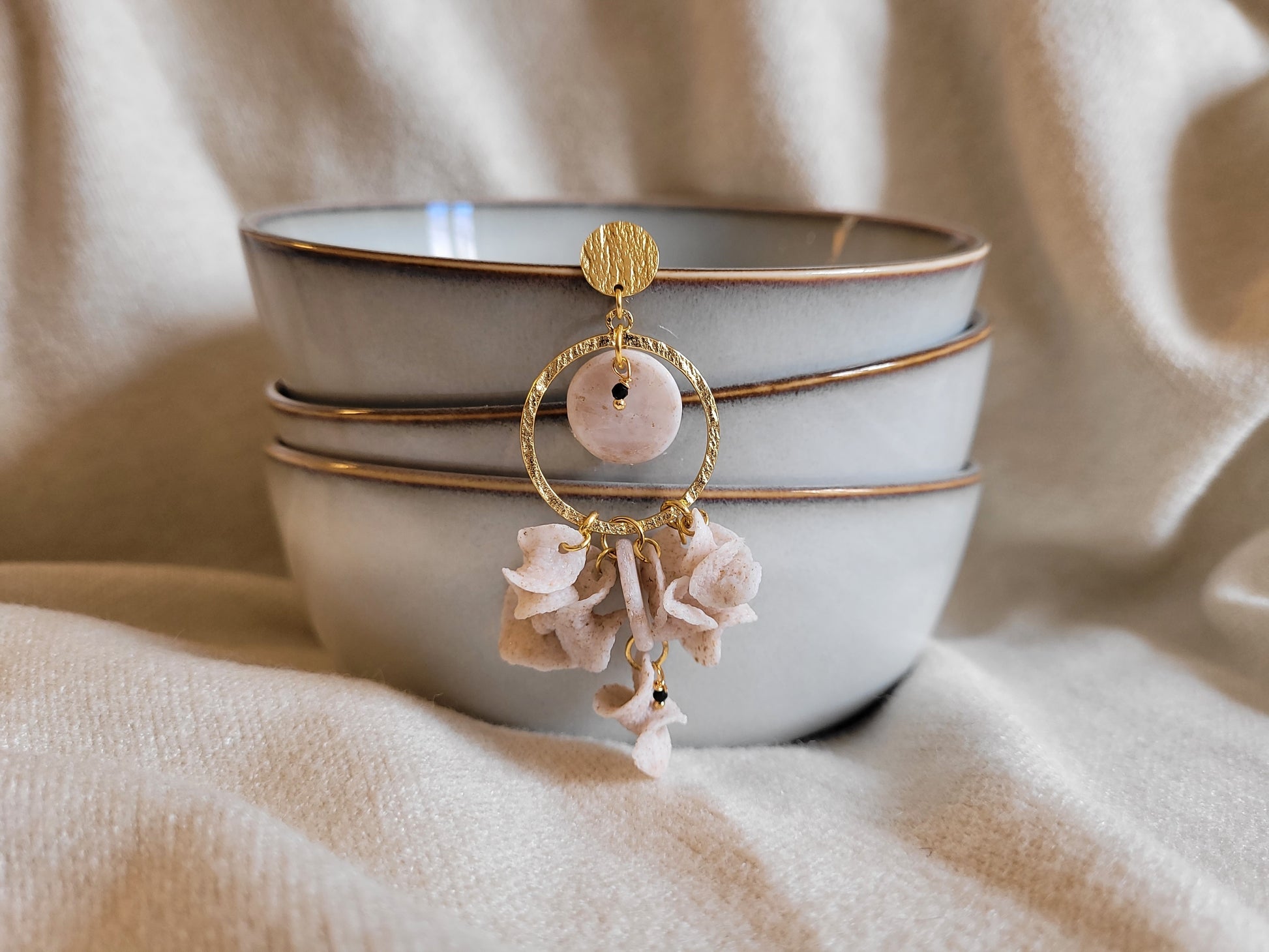 • Assemblage sur cercles texturés en laiton doré à l'or fin