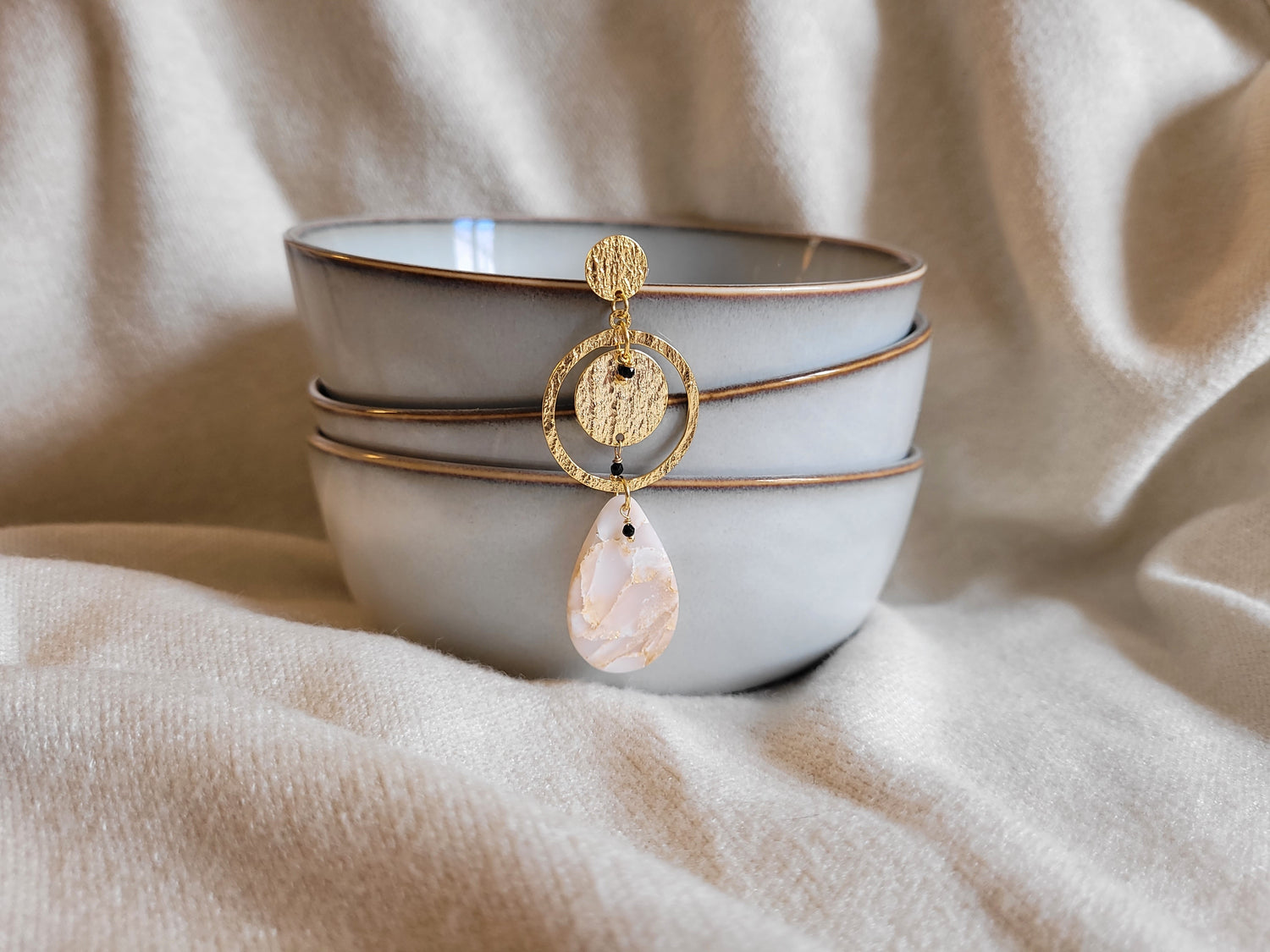 • Assemblage sur cercles texturés en laiton doré à l'or fin