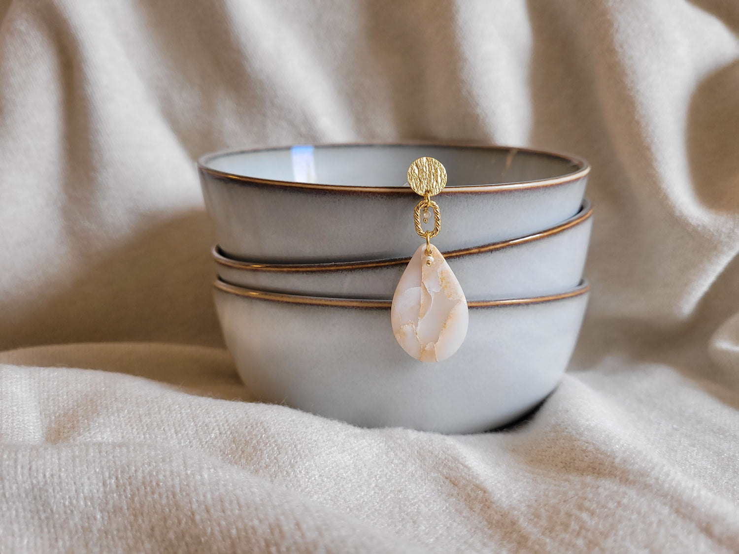 Chaque bijou est conçu et fabriqué à la main, en petite série, série limitée ou en exemplaire unique dans mon atelier à Saint-Germain-en-Laye. Les apprêts utilisés sont choisis avec exigence, principalement en laiton doré à l’or fin ou en acier inoxydable, issus de fournisseurs européens répondant aux normes REACH (sans plomb, sans nickel, sans cadmium).