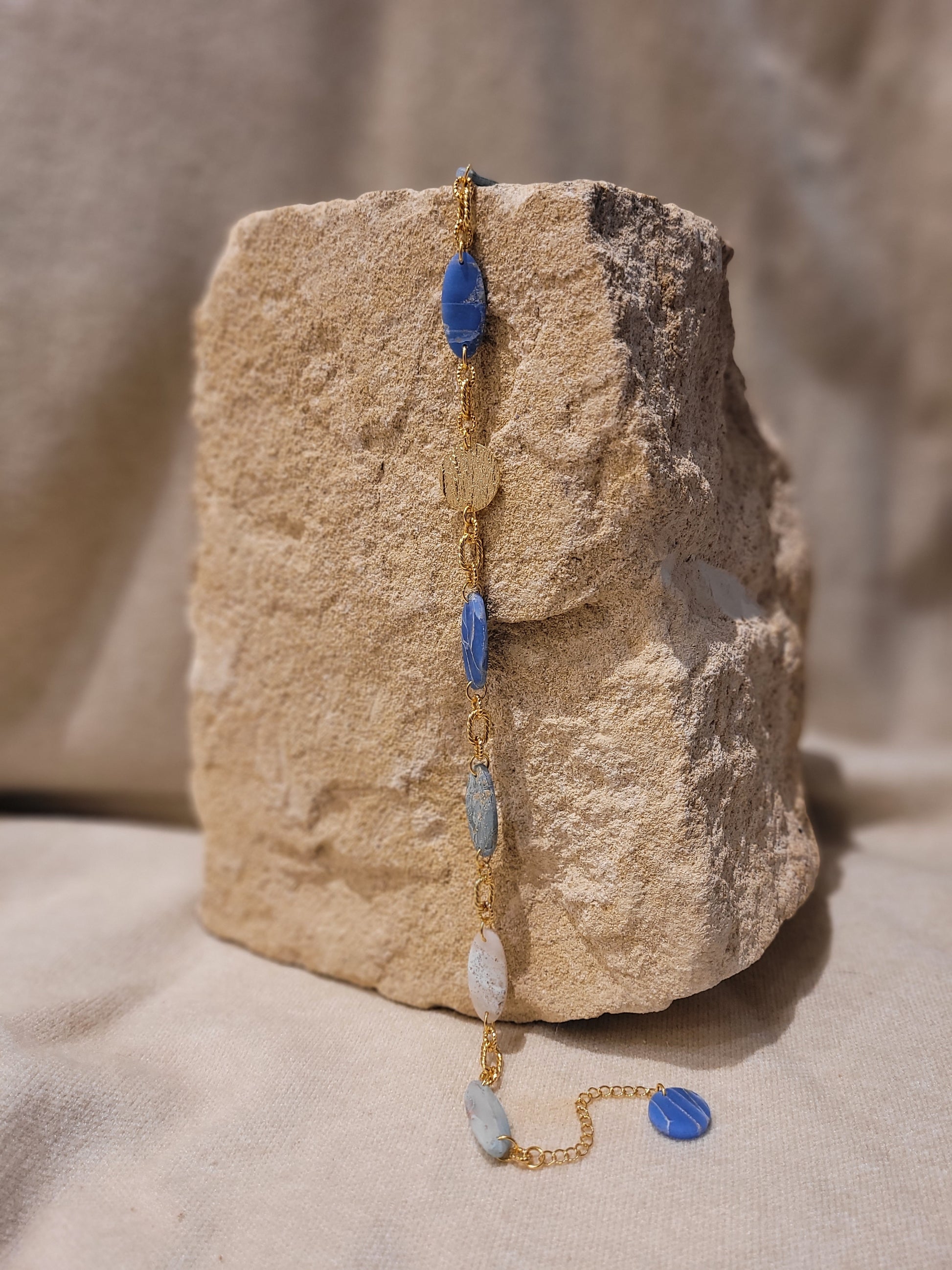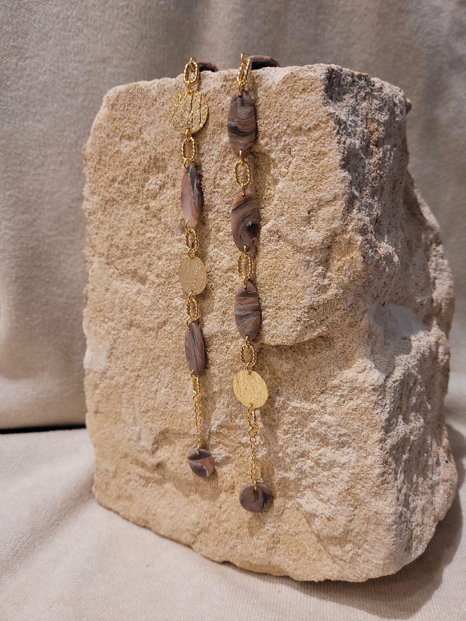 • Matériaux : pâte polymère, laiton doré à l'or fin.