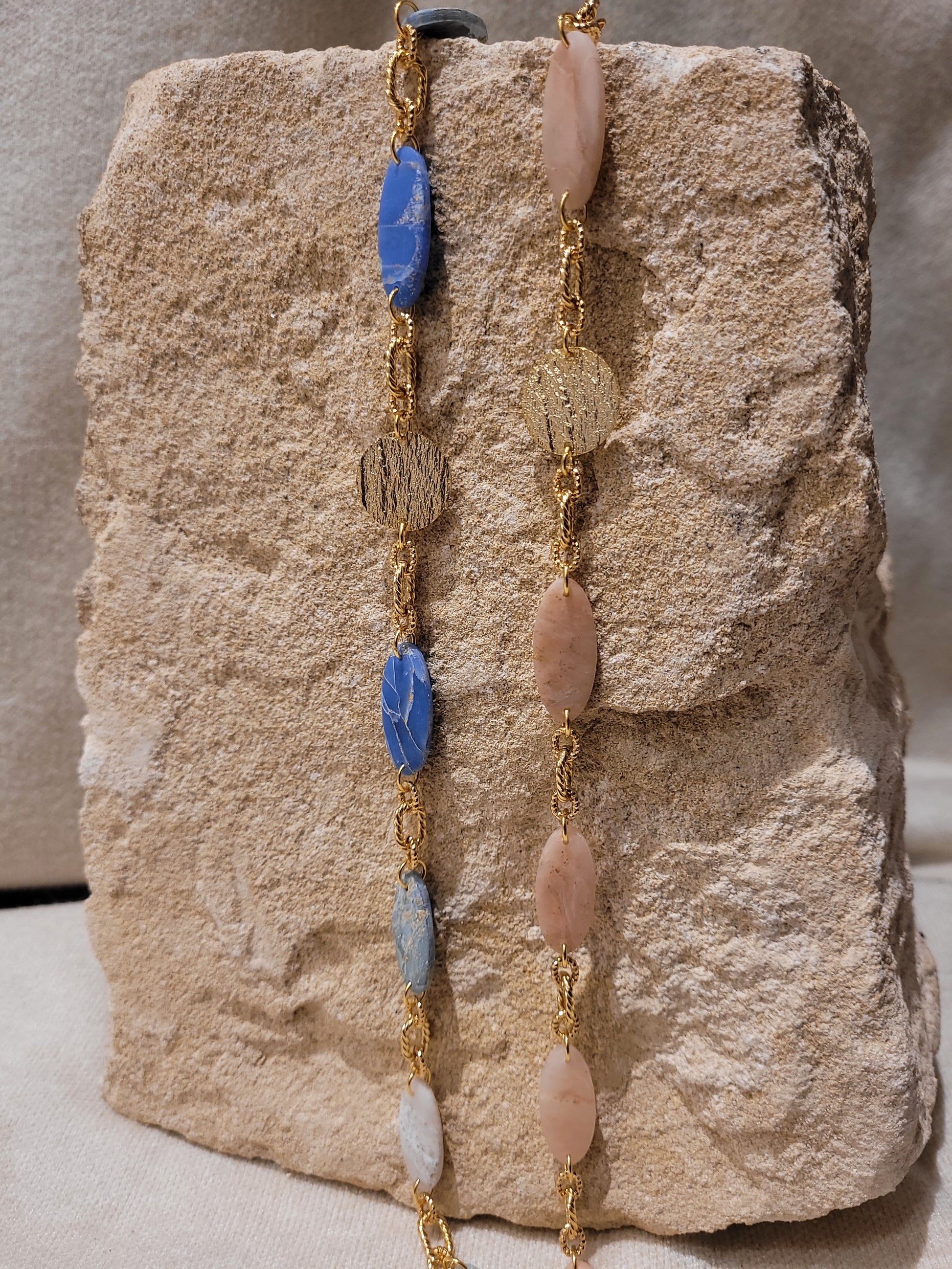 • Type de fermoir : mousqueton en laiton doré.