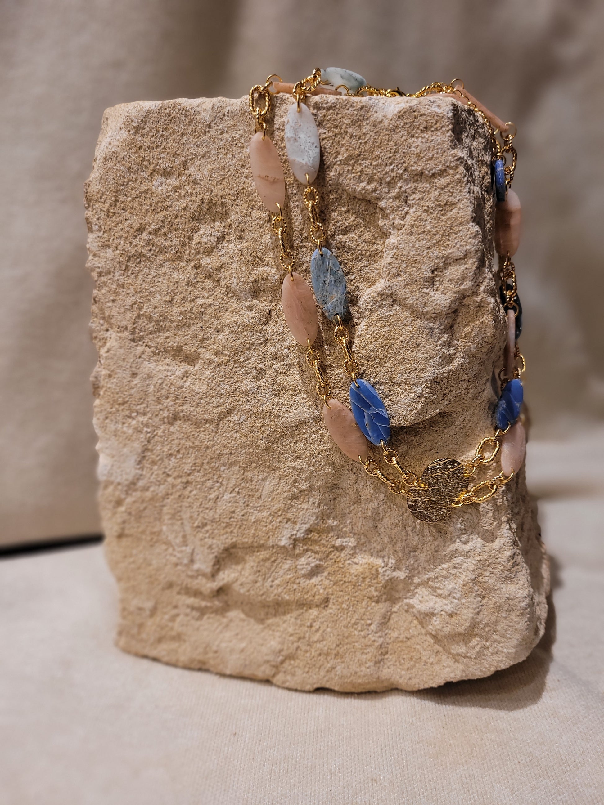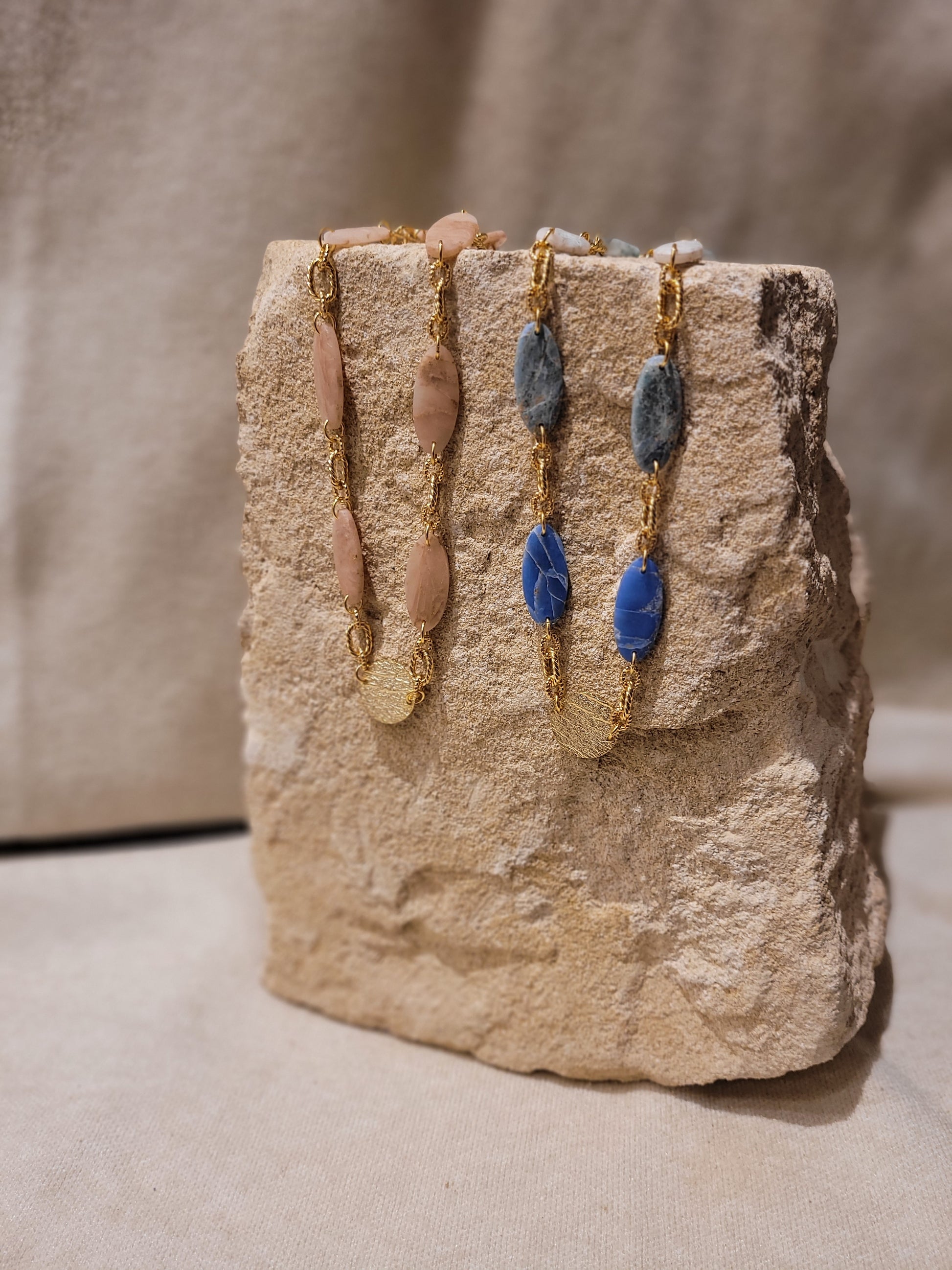 Chaque bijou est conçu et fabriqué à la main, en petite série, série limitée ou en exemplaire unique dans mon atelier à Saint-Germain-en-Laye. Les apprêts utilisés sont choisis avec exigence, principalement en laiton doré à l’or fin ou en acier inoxydable, issus de fournisseurs européens répondant aux normes REACH (sans plomb, sans nickel, sans cadmium).