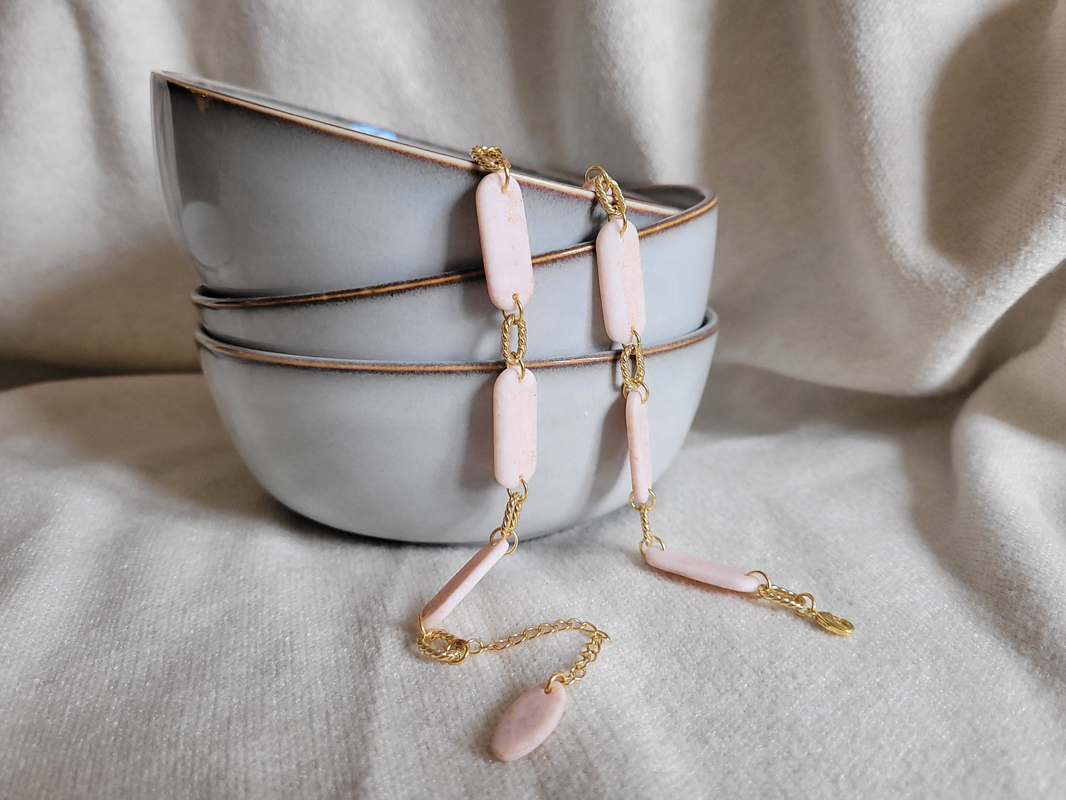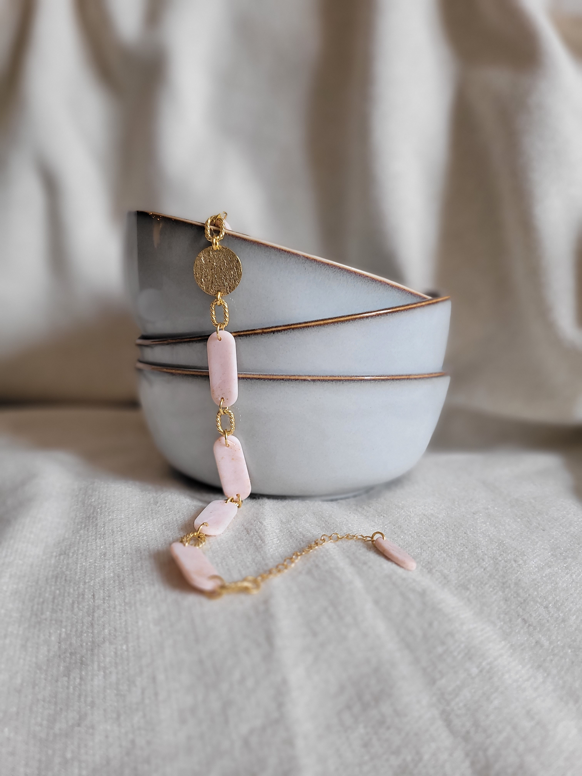 Chaque bijou est conçu et fabriqué à la main, en petite série, série limitée ou en exemplaire unique dans mon atelier à Saint-Germain-en-Laye. Les apprêts utilisés sont choisis avec exigence, principalement en laiton doré à l’or fin ou en acier inoxydable, issus de fournisseurs européens répondant aux normes REACH (sans plomb, sans nickel, sans cadmium).